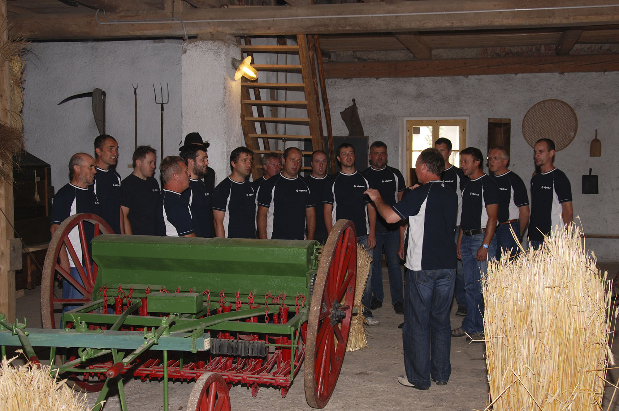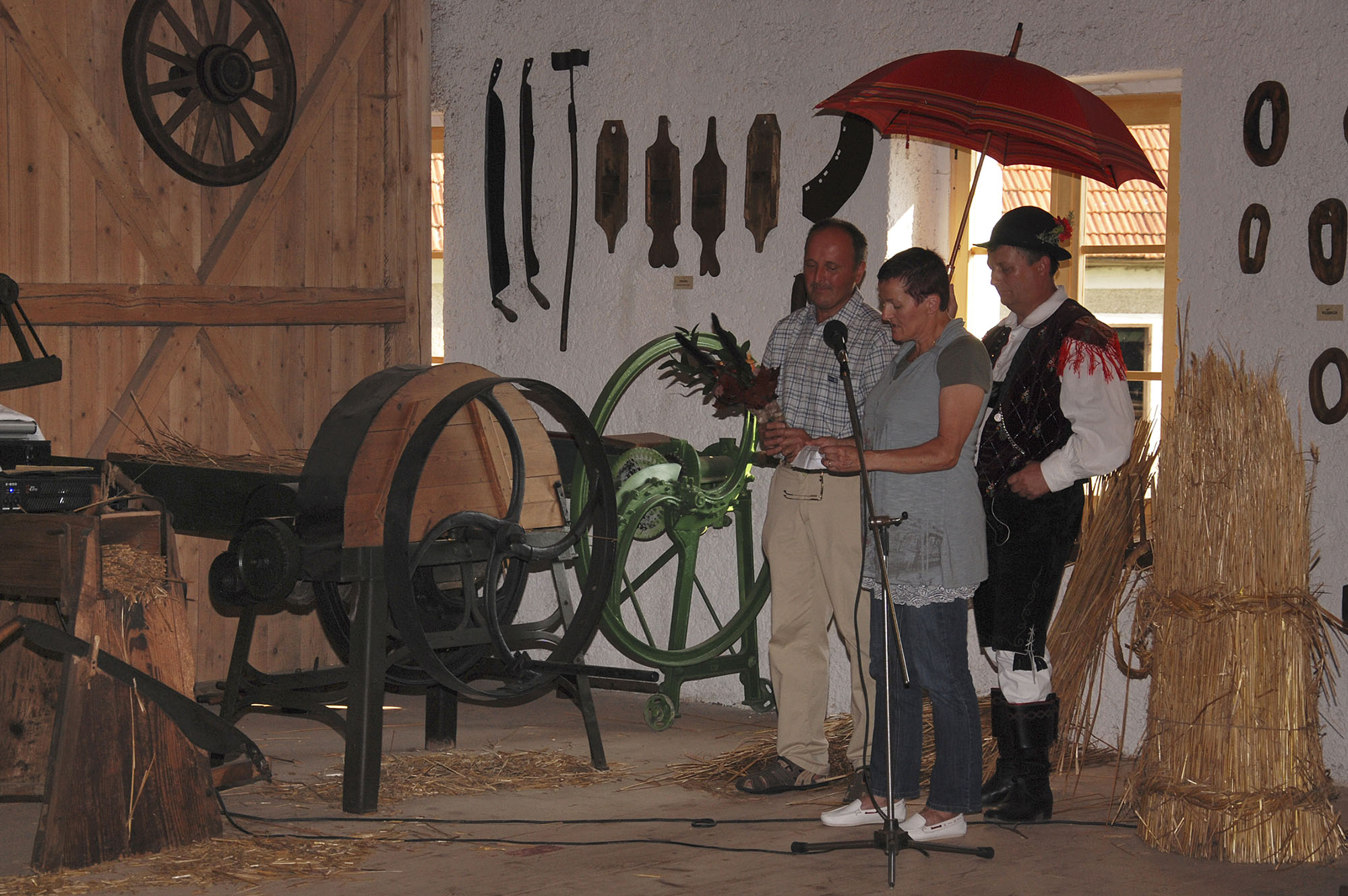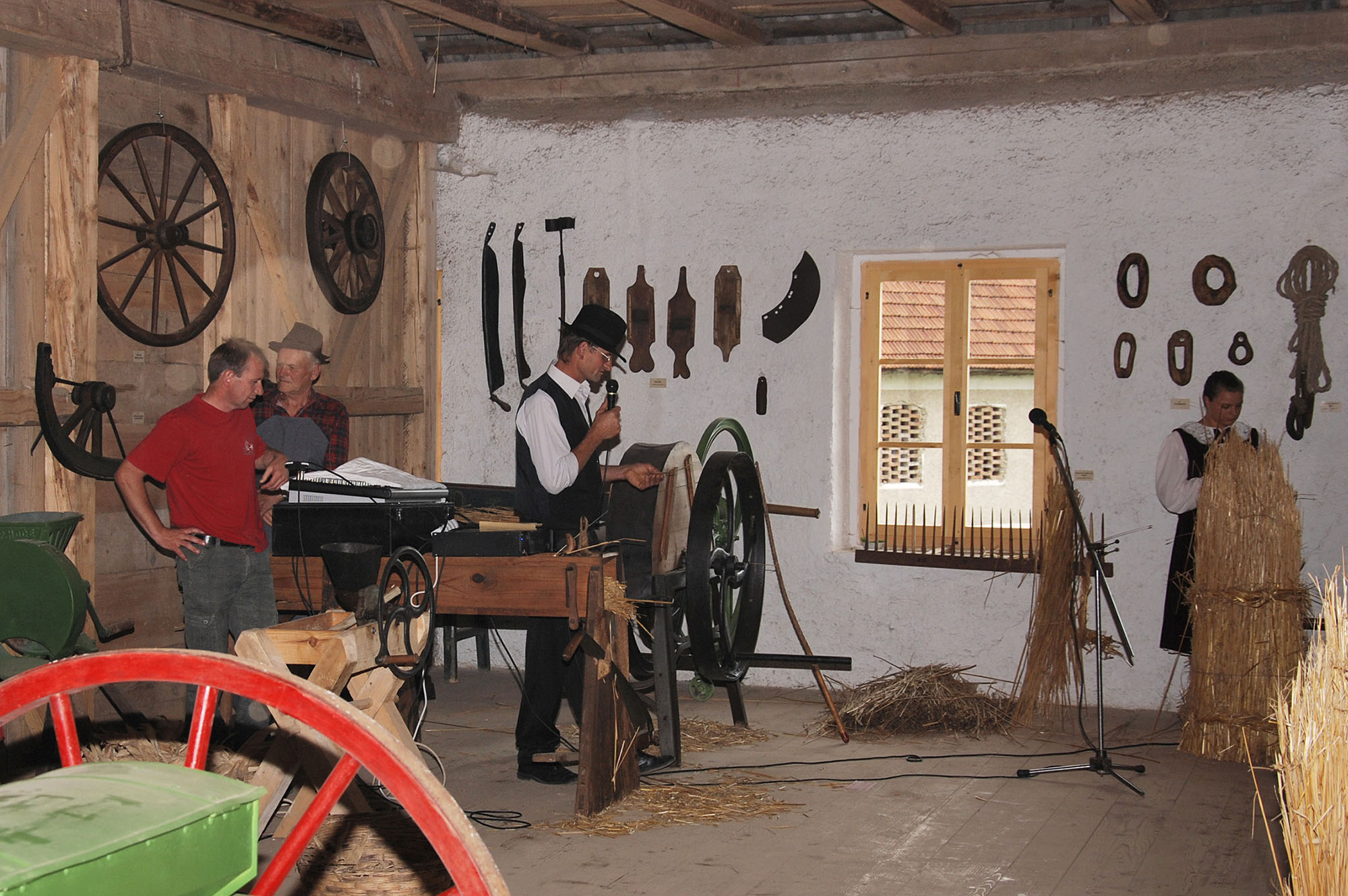 Tisto lepo sobotno popoldne smo v dobri družbi, na vabilo se je namreč odzvalo kar lepo število obiskovalcev, uradno otvorili naš skedenj (šupo) in s tem javno predstavili znatno povečano zbirko orodja in pripomočkov.