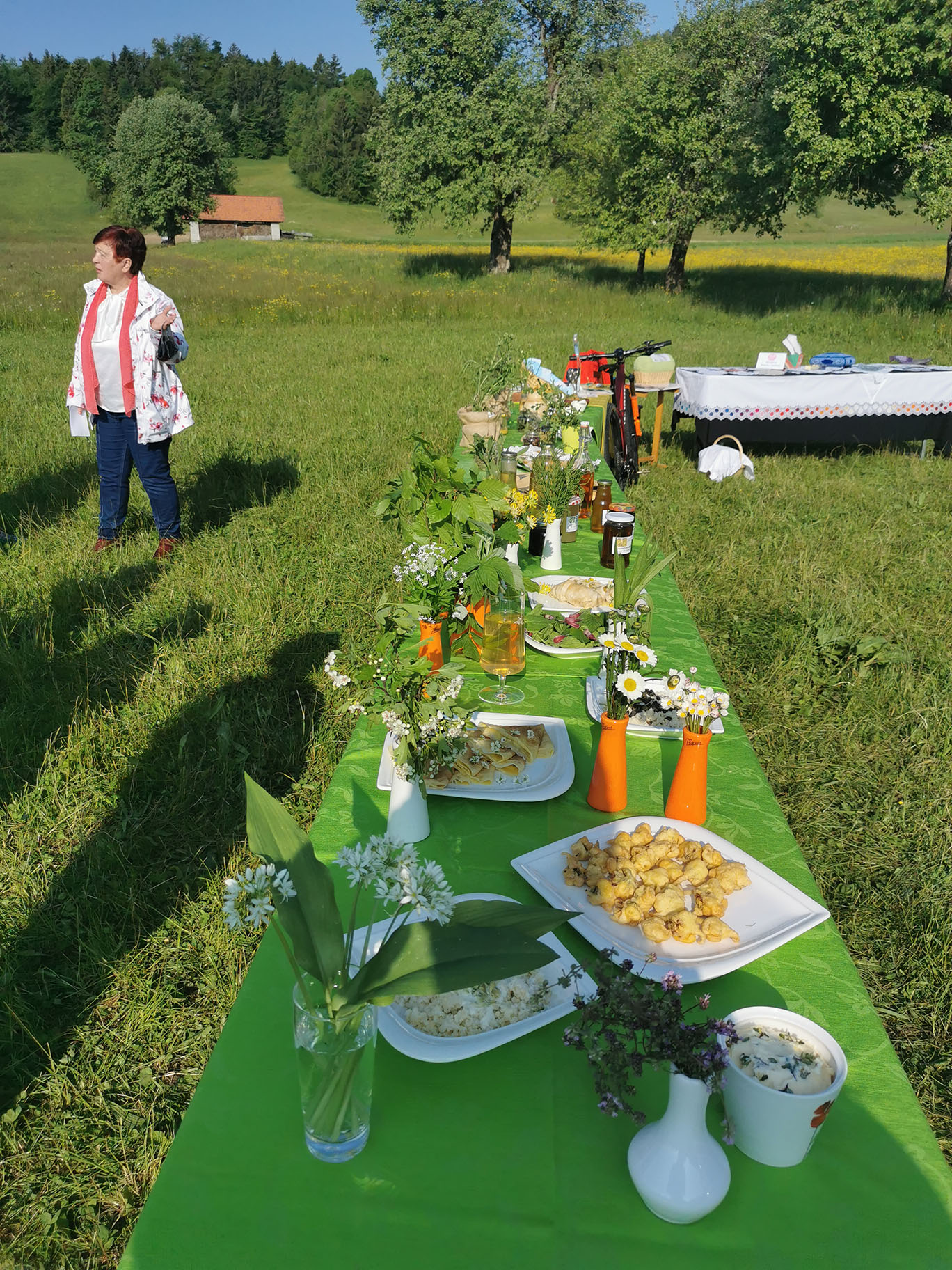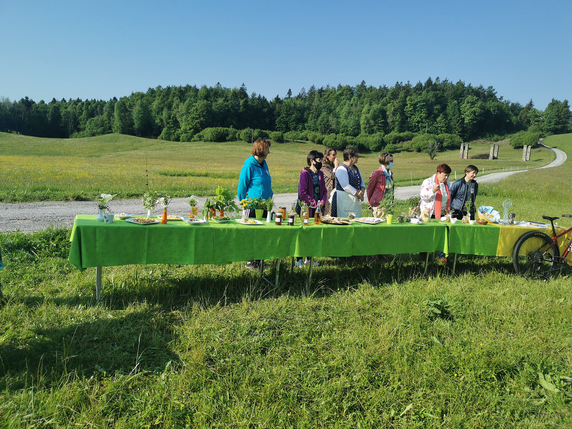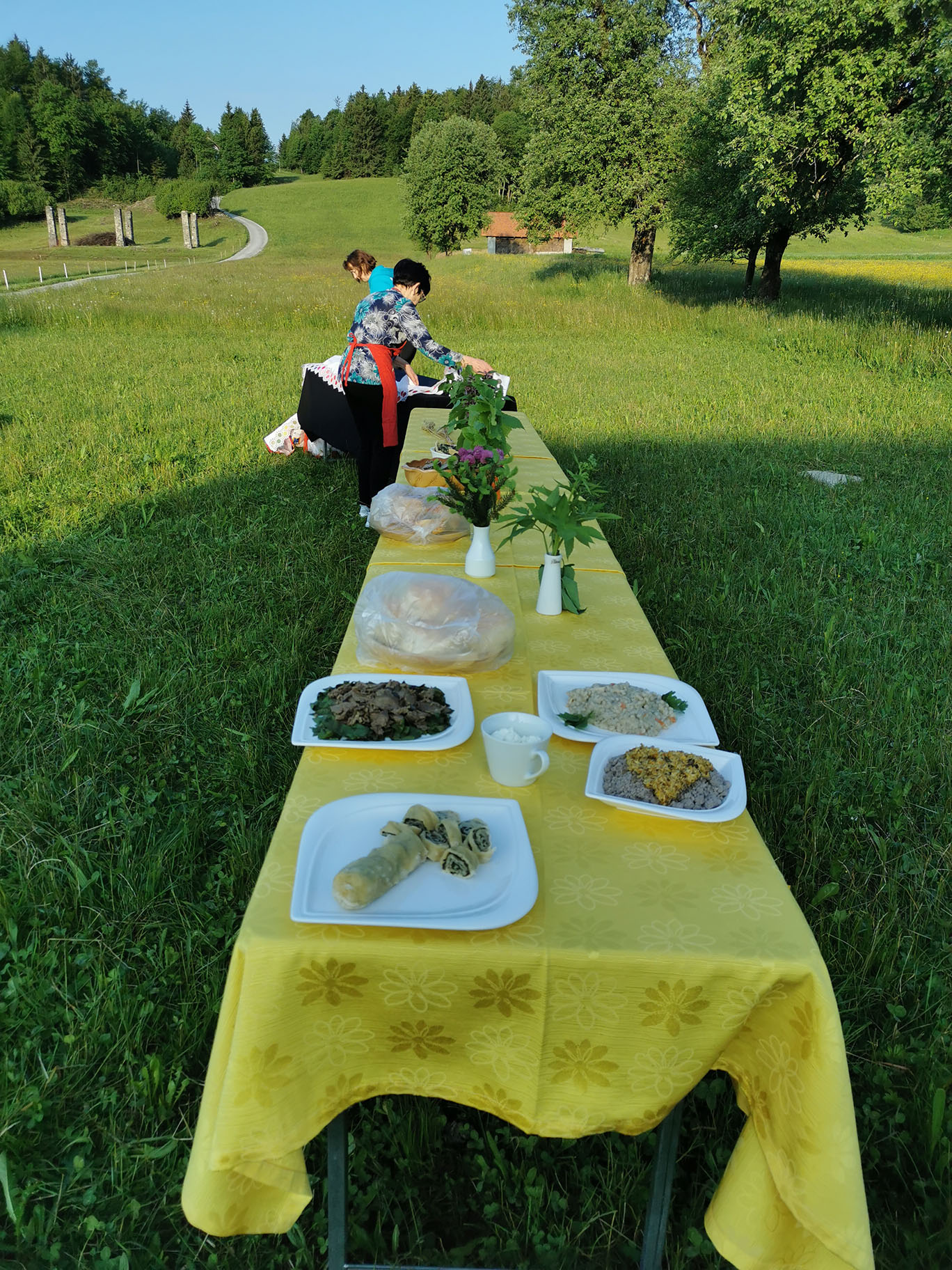 Gospa Lučka Dolničar se je zelo strokovno, poglobila v kulinariko v Ledinah in nam dala zelo koristne nasvete. Prvo je pomembno vedeti, kaj pomeni naravno in sicer ni vse kar je naravno tudi za jesti. Zato bomo v bodoče ta pojem posebej izpostavili. Vse kar je bilo na mizi od divjih rastlin je spadalo v človekovo prehransko verigo, zato smo lahko to tudi poizkušali. Gospa Lučka se je spomnila tudi na potico zelševko, ki je bila tam zelo znana, bila je tudi na mizi."