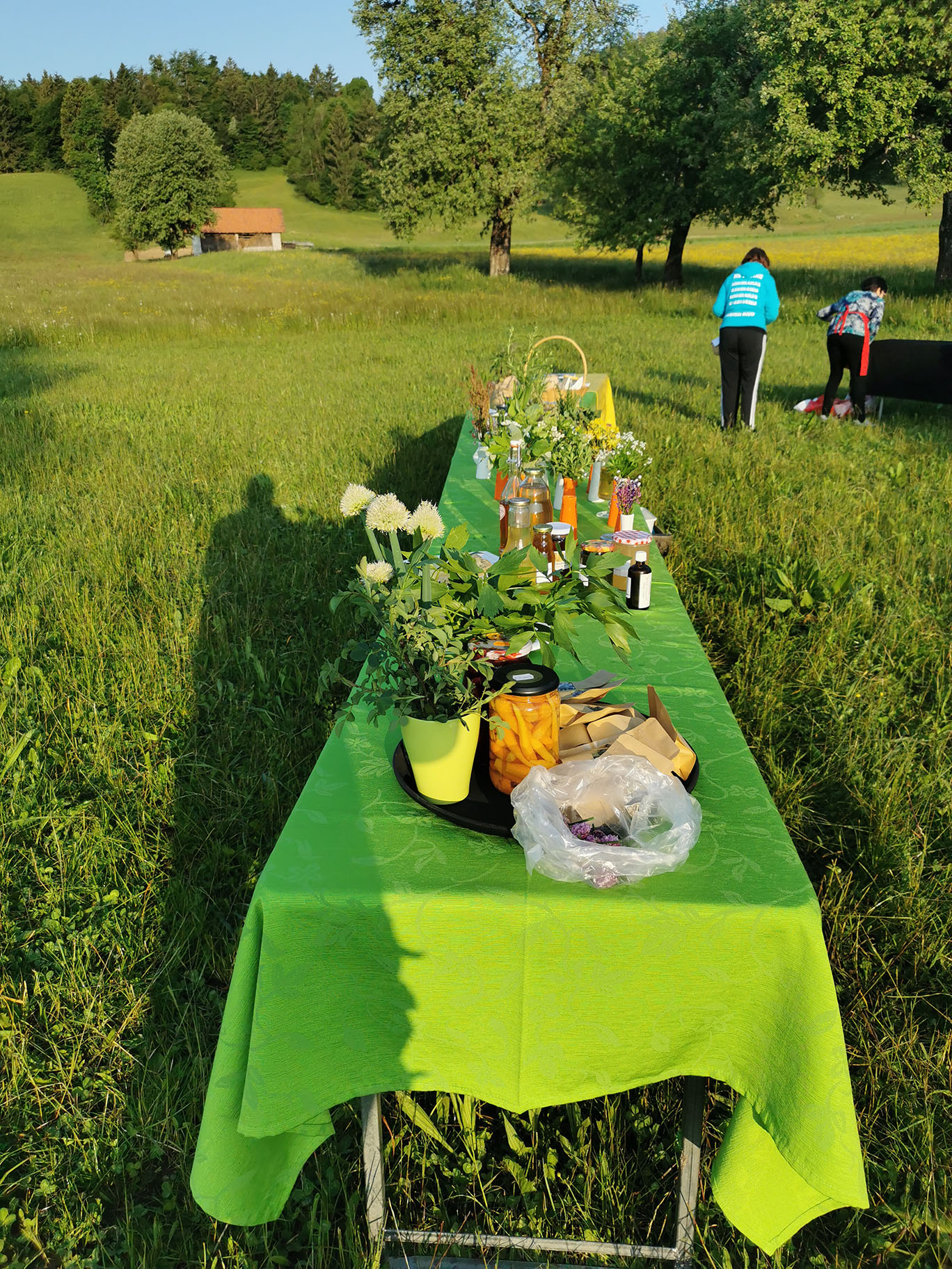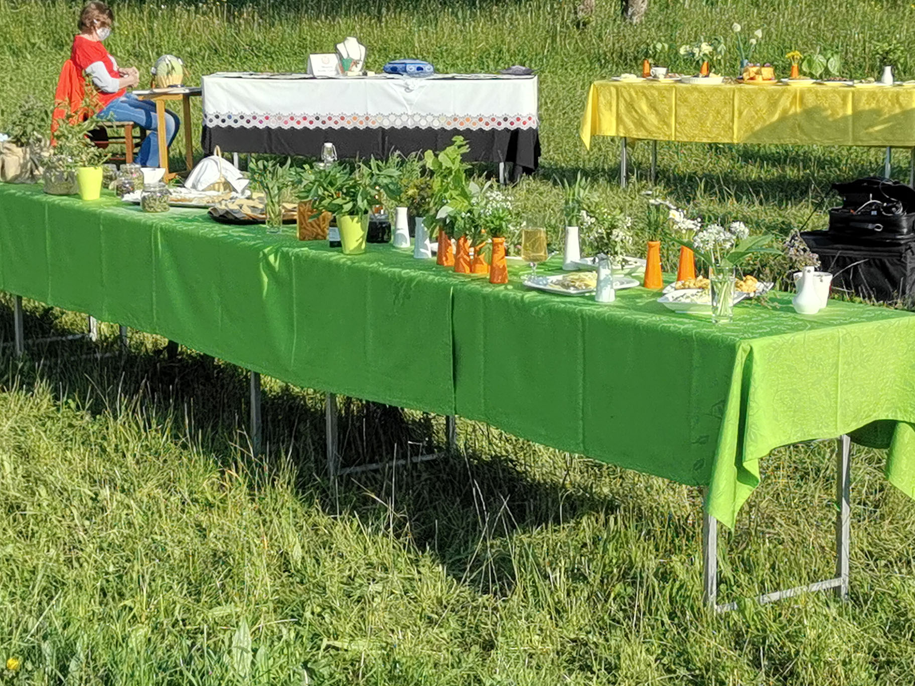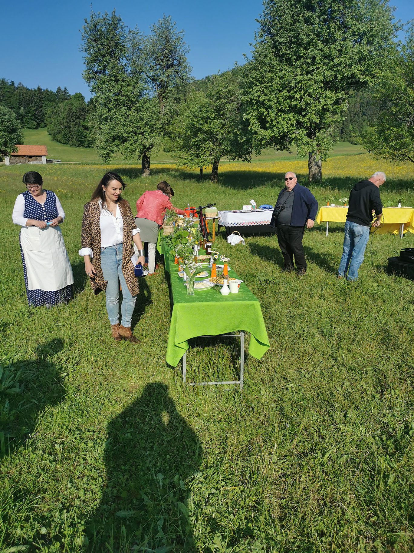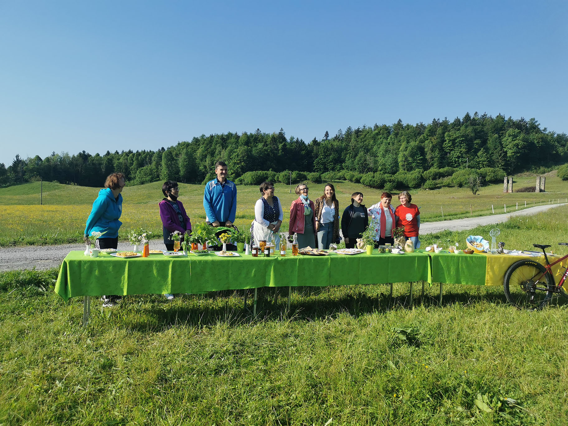 Gospa Lučka Dolničar se je zelo strokovno, poglobila v kulinariko v Ledinah in nam dala zelo koristne nasvete. Prvo je pomembno vedeti, kaj pomeni naravno in sicer ni vse kar je naravno tudi za jesti. Zato bomo v bodoče ta pojem posebej izpostavili. Vse kar je bilo na mizi od divjih rastlin je spadalo v človekovo prehransko verigo, zato smo lahko to tudi poizkušali. Gospa Lučka se je spomnila tudi na potico zelševko, ki je bila tam zelo znana, bila je tudi na mizi."