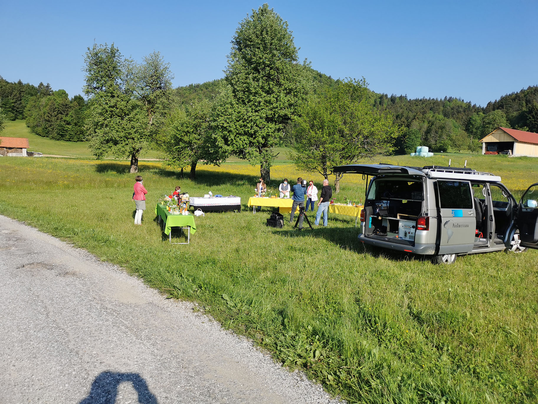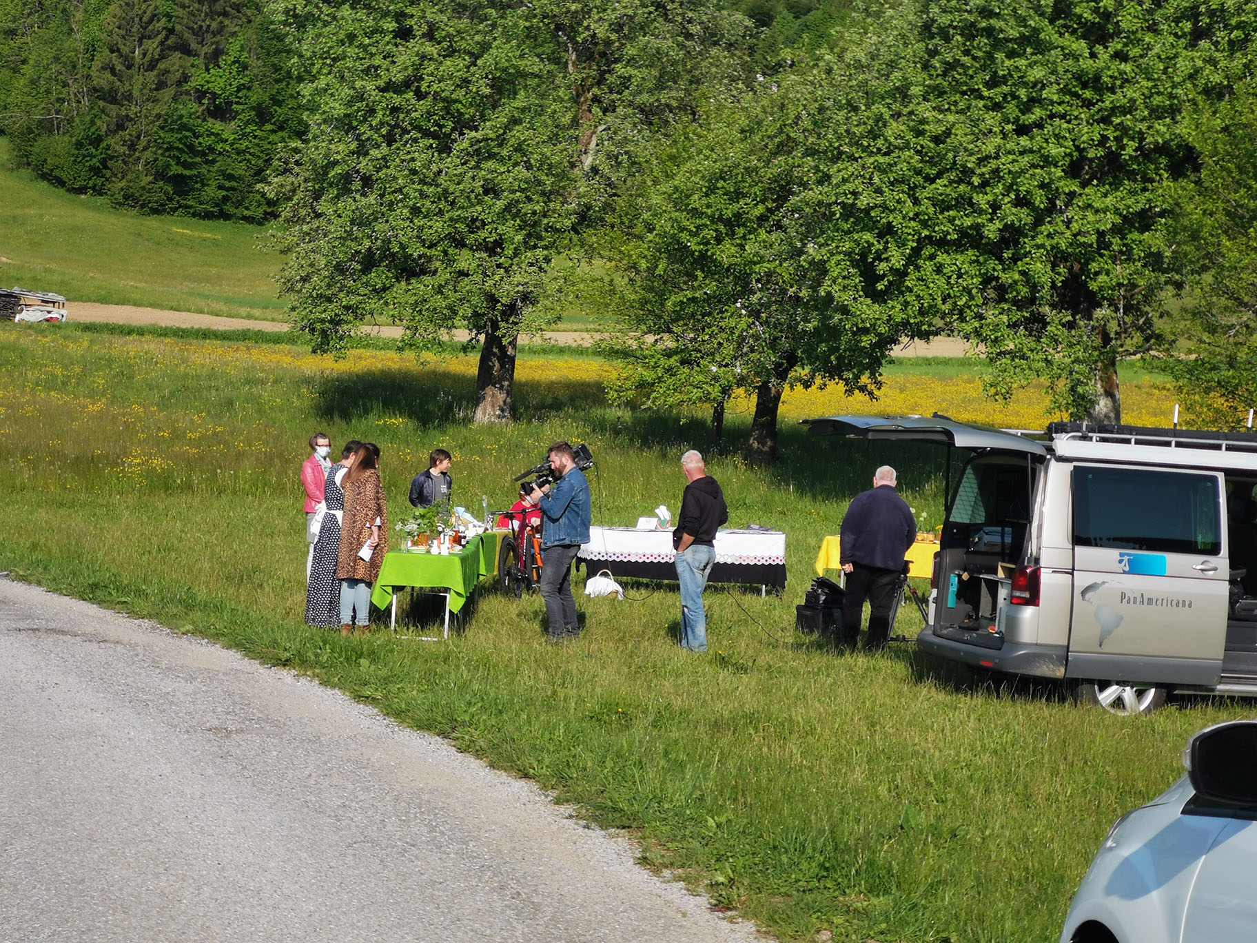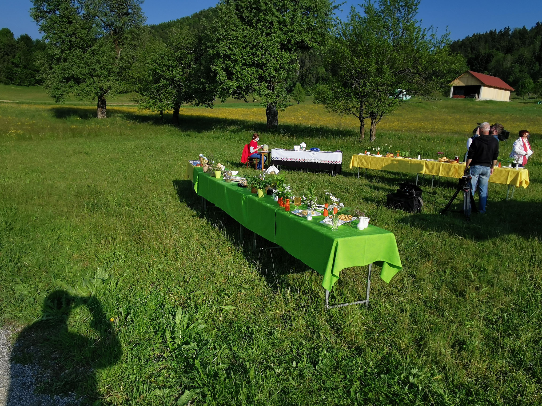 "Gospa Tomislava Bogataj iz kmetije Pr Jureč, ki je bila tudi sogovornica v oddaji, je z največjo zavzetostjo izdelala več jedi in pripravila šopke, čaje in skoraj vso okrasitev. Brez njenega moža Dušana pa tudi ne bi mogli, saj je svojim traktorjem razvažal mize do prizorišča."