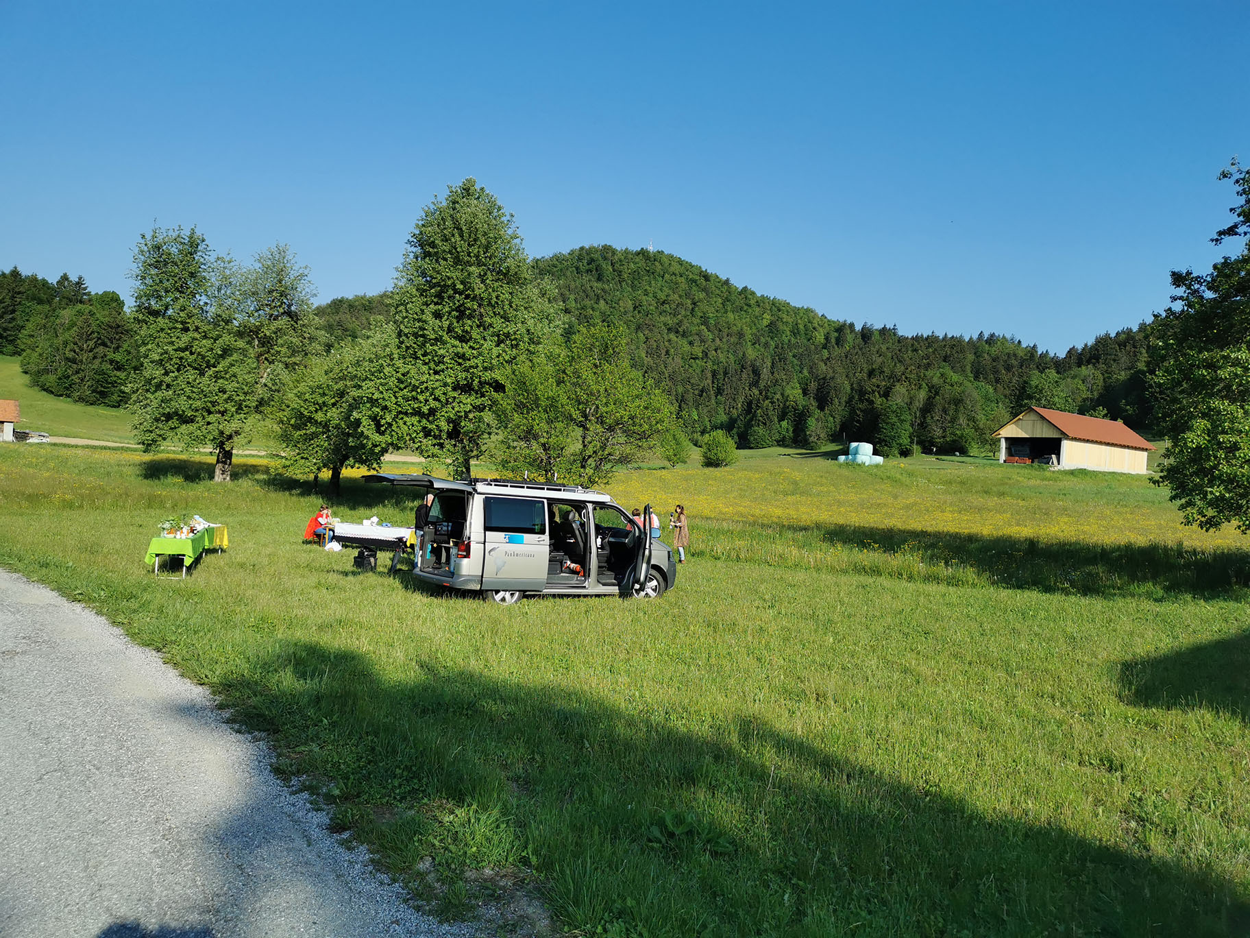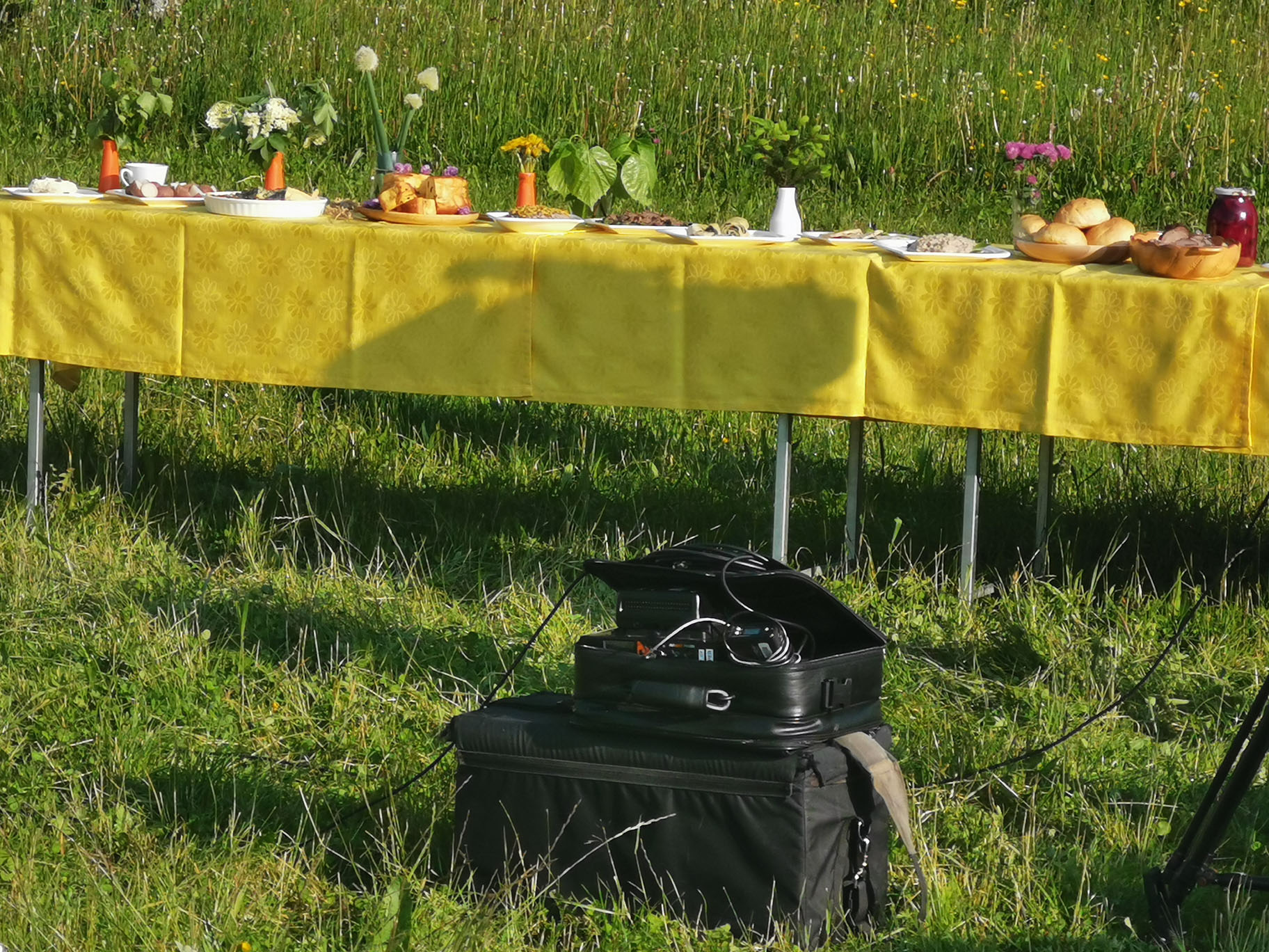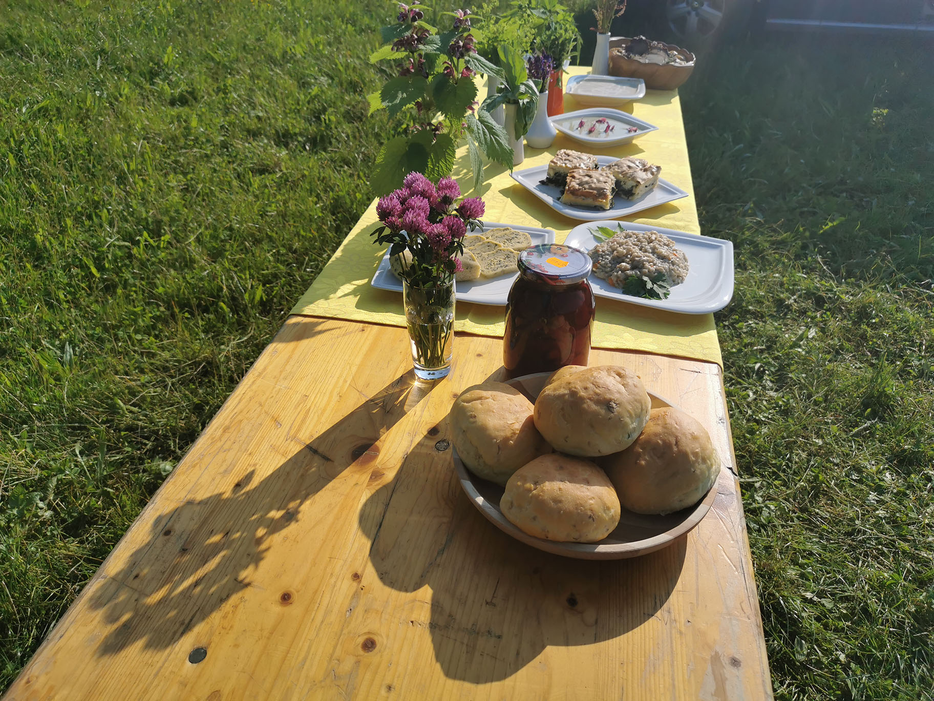 "Gospa Tomislava Bogataj iz kmetije Pr Jureč, ki je bila tudi sogovornica v oddaji, je z največjo zavzetostjo izdelala več jedi in pripravila šopke, čaje in skoraj vso okrasitev. Brez njenega moža Dušana pa tudi ne bi mogli, saj je svojim traktorjem razvažal mize do prizorišča."